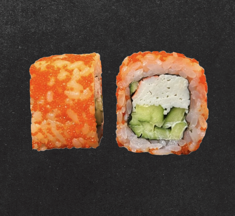 Рис, нори, майонез, огурец, снежный краб, икра масаго
